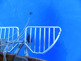 We left St. Helena in good spirits with Muddy looking better and hopefully good trade winds. But after 2 days Muddy became sick again and the wind became less and less to ZERO. The Atlantic osean was mirror calm. It was a great experience, but also nerve wrecking. We did not want to use the diesel in the beginning of the crossing, so we had to wait it out. This gave us time to swim, do some maintenance and watch a few movies. After 3 days we decided to motor 10hrs and hopefully come out off this area. At last the wind slowly started again. We had a vistit of hundrends of dolfins at sundown 300nm from land, then birds became more regular and at last Jaco caught a fish. I were still staring in the wake of the boat when I saw something big and not a dolfin: a blue Marlin. It was swimming for a while behind the boat, then it went for the lure with Christelle shouting no!, and Jaco yes!, yes! We were moving too slow, the Marlin gave a jump out of the water and swam away. At 4am on 21 December, 35days after we left Walvisbay, we sailed into Salvador.
